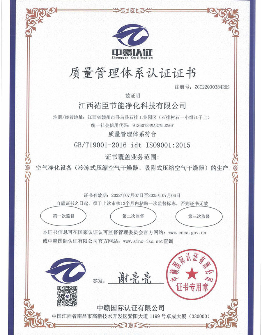 干燥机产品质量安全证...